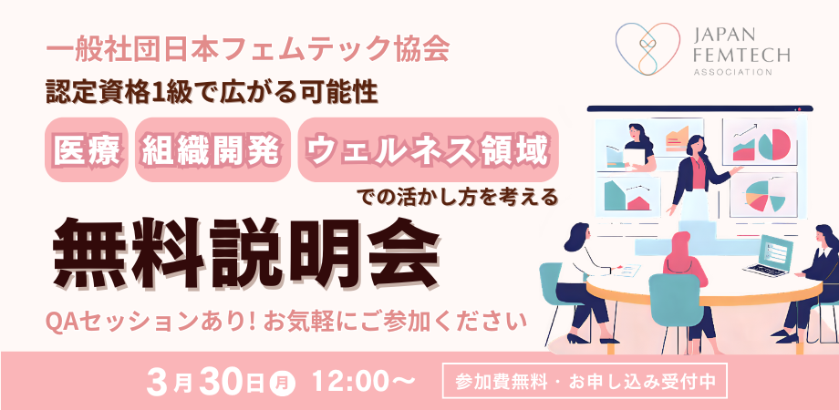「フェムテックのスペシャリスト」として、新しい自分をスタートさせませんか?皆さまのチェックを心よりお待ちしております!