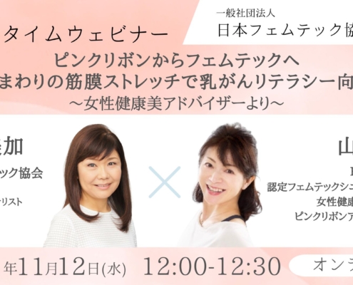liberty2025-11-13 15:08:322025-11-13 15:08:32【第98回:ランチタイムウェビナー】胸まわりの筋膜ストレッチで乳がんリテラシー向上 ~女性健康美アドバイザーより~