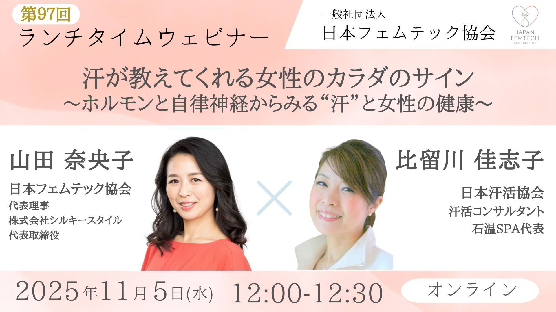 liberty2025-11-05 14:16:542025-11-05 14:19:30【第97回:ランチタイムウェビナー】汗のタイプ別診断も!ホルモンと自律神経からみる“汗”と女性の健康