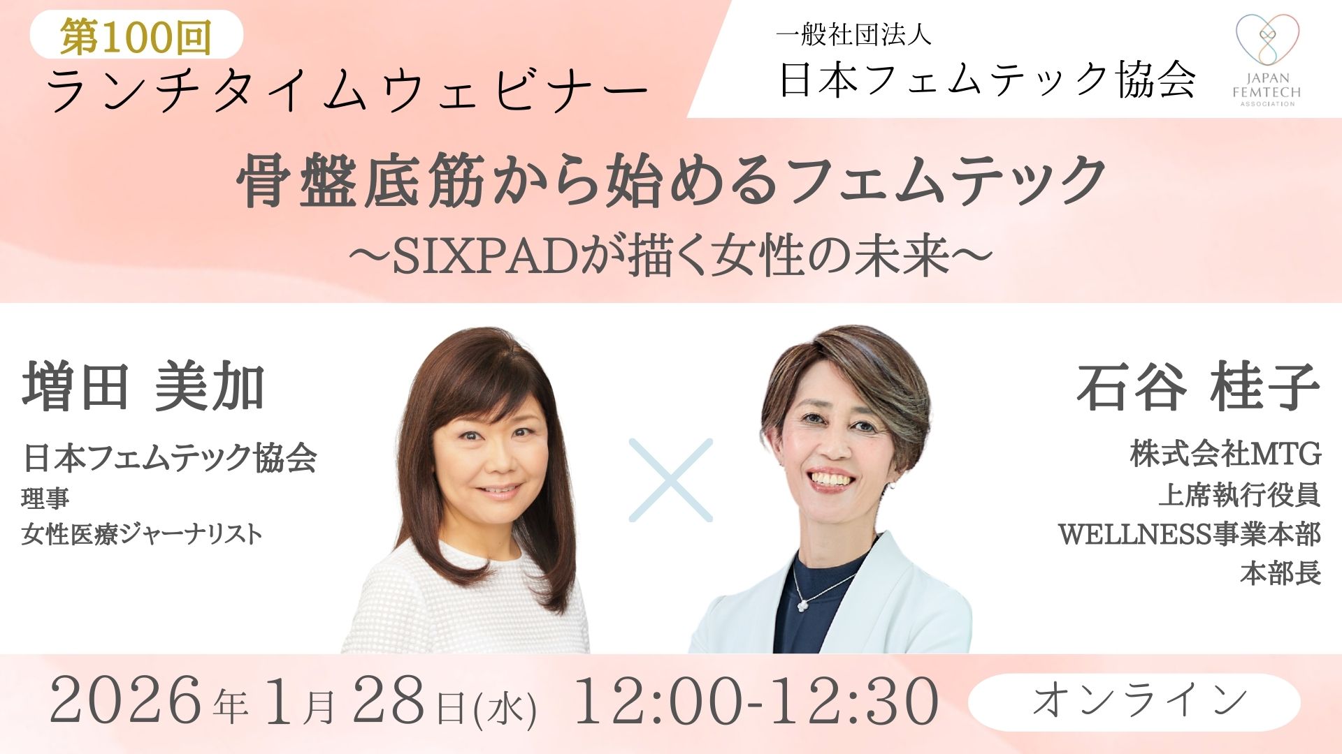 liberty2026-01-28 23:00:102026-02-03 23:08:42【第100回:ランチタイムウェビナー】骨盤底筋から始めるフェムテック〜SIXPADが描く女性の未来〜