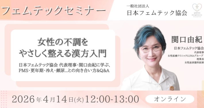 liberty2026-04-06 10:27:402026-04-06 10:27:41★セミナー申込受付開始★【女性の不調をやさしく整える漢方入門】 〜日本フェムテック協会代表理事 関口由紀に学ぶ、PMS・更年期・冷え・頻尿…との向き合い方&Q&A